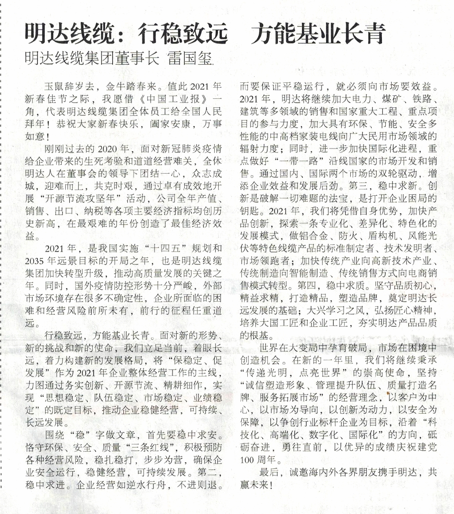 2021Äê2ÔÂ18ÈÕ³öÊéµÄ¡¶Öйú¹¤Òµ±¨¡·£¬ÒÔ¡¶½ðÅ£·ÜÌã ¿´µçÀÂÐÐÒµÃûÆóÔõÑùÔÙÆôг̡·ÎªÌ⣬½ÒÏþ±¦Ê¤µ³Î¯Êé¼Ç¡¢¶Ê³¤ÑîÔóÔª£¬Ô¶¶«¶Ê¾ÖÖ÷ϯ¡¢µ³Î¯Êé¼Ç½¯ÎýÅ࣬KAIYUN¶Ê³¤À×¹úçôµÈÎåλÀÂÆóÀÏ×ܵġ°ÐÂÄêÐÂÔ¸¡±¡£ÏÖ½«KAIYUN¶Ê³¤À×¹úçôµÄ¡¶ÐÐÎÈÖÂÔ¶ ·½ÄÜ»ùÒµ³¤Çà¡·Ò»ÎÄÓèÒÔ×ªÔØ¡ª¡ª