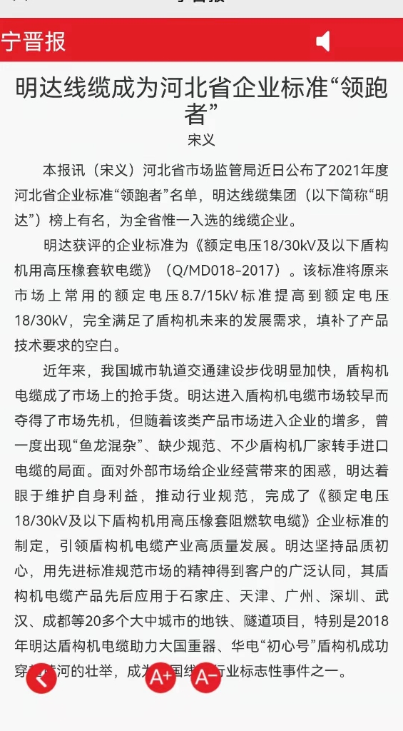 KAIYUN»ñÆÀµÄÆóÒµ±ê׼Ϊ¡¶¶î¶¨µçѹ18/30kV¼°ÒÔ϶ܹ¹»úÓøßѹÏðÌ×ÈíµçÀ¡·£¨Q/MD018-2017£©,¸Ã±ê×¼½«ÔÀ´µÄÊг¡Éϳ£ÓõĶµçѹ8.7/15kV±ê×¼Ìá¸ßµ½¶î¶¨µçѹ18/30kV£¬Íêȫ֪×ãÁ˶ܹ¹»úδÀ´µÄÉú³¤ÐèÇó£¬Ìî²¹Á˲úÆ·ÊÖÒÕÒªÇóµÄ¿Õȱ¡£